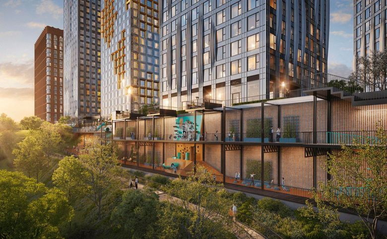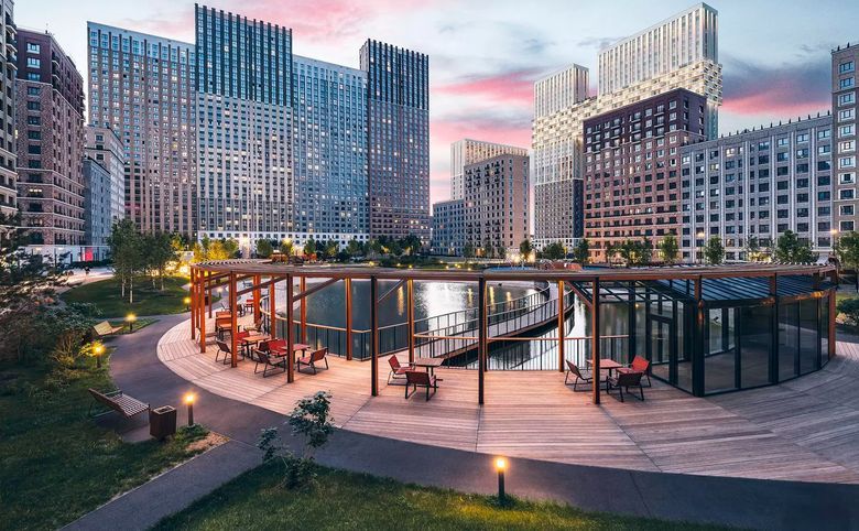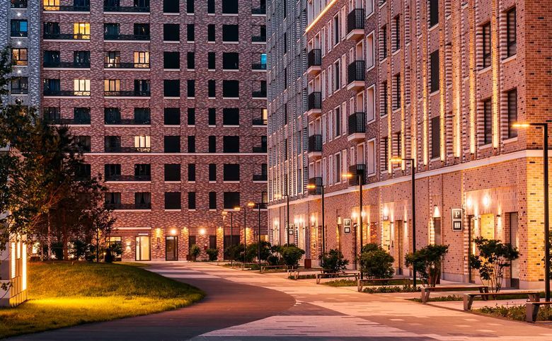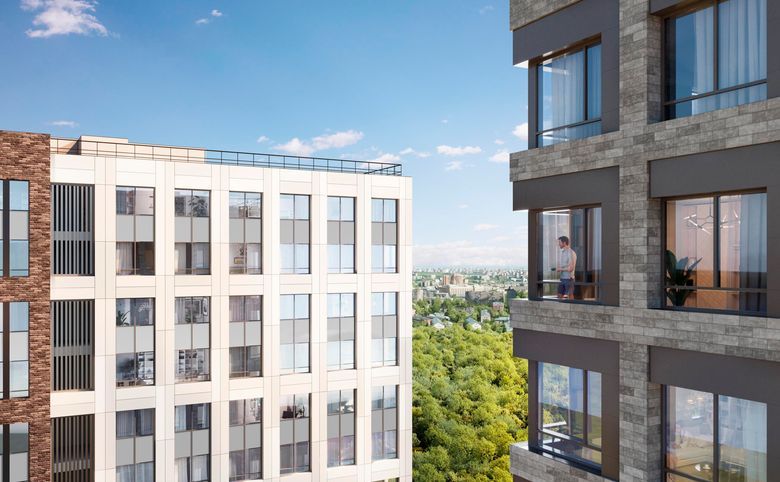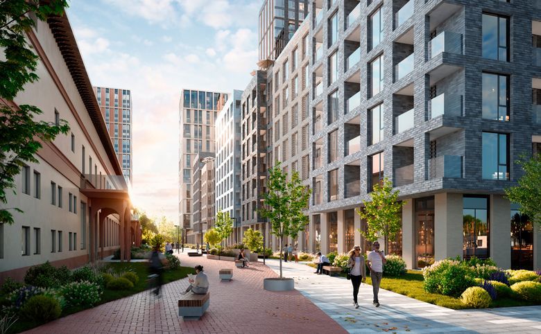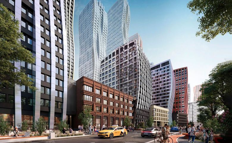 Проект представляет собой квартальную застройку в стиле Нью-Йорка. Дворы закрыты от